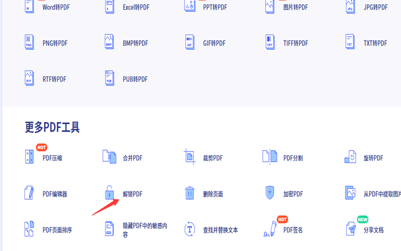 步骤1、打开http://www.hipdf.cn/进入在线版日韩免费视频观看PDF。在主页面的所有工具中的更多工具项内找到解锁PDF功能项,点击进入。