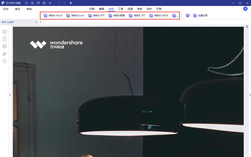 第五、在软件自动合并完后会打开合并后的新文档。新文档的名字是以合并为名字的PDF文件。在打开的界面可以预览合成的效果,如果需要把文件转换成其他格式可以直接点击文档上方的功能按钮。