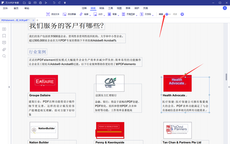 5.在新生成的署名为xxx_OCR,PDF文档的编辑界面,仍然需要关闭阅读模式开启编辑模式。不过这个时候图片内的文字是可以编辑的。