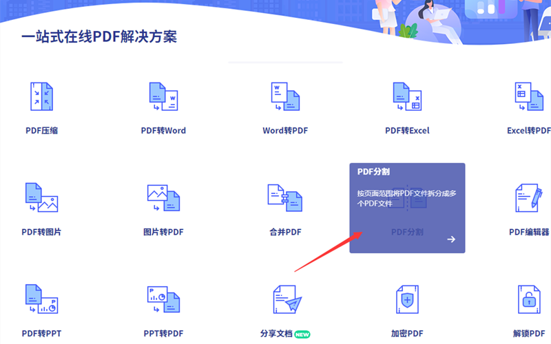步骤1、1.打开网站www.hipdf.cn/,在日韩免费视频观看一站式在线PDF解决方案界面上找到PDF分割功能选项。