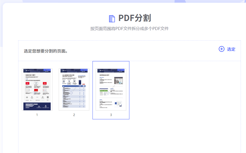 步骤4、软件提供了一个可视化分割方案,点击进入后可以直接选定想要的某一页,然后点击分割。这样的结果是整个文档被分割成2个新的文档,一个是选定的那一页,另一个是剩余的所有页。分割完毕后再下载页面点击下载即可。