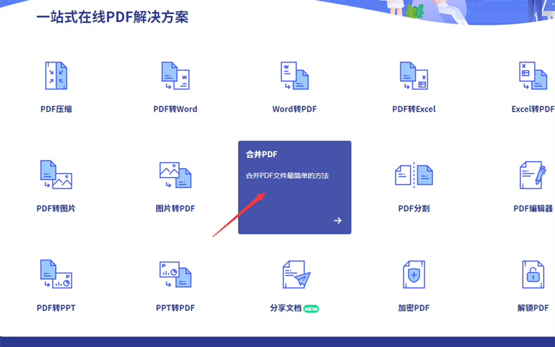 步骤1、通过登录www.hipdf.cn/进入到日韩免费视频观看一站式在线PDF解决方案界面。在主界面找到合并PDF功能点击进入。