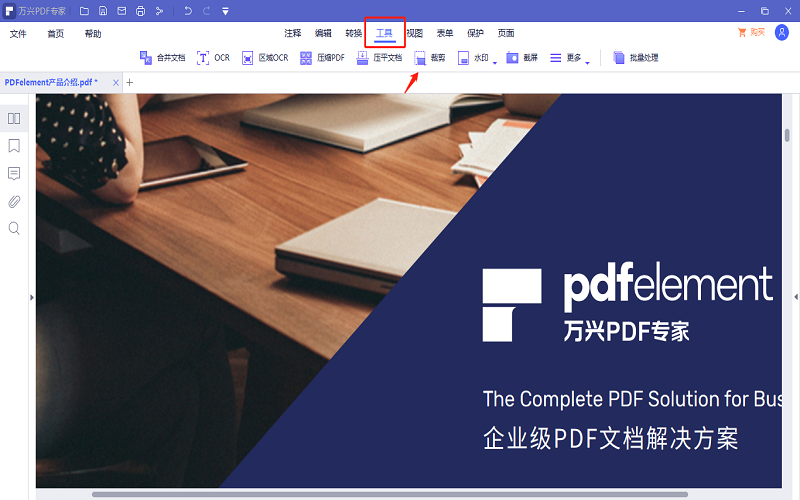 步骤2、接着需要点击软件上方的“工具”选项,然后选择“裁剪”功能,这样就可以对PDF界面进行PDF页面的裁剪操作。