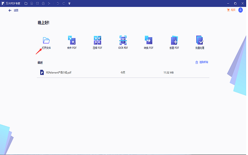 1、首先我们点击安装在电脑上的日韩免费视频观看PDF专家,打开软件界面之后,我们点击软件界面的“打开”选项。打开我们需要进行编辑的PDF文件。