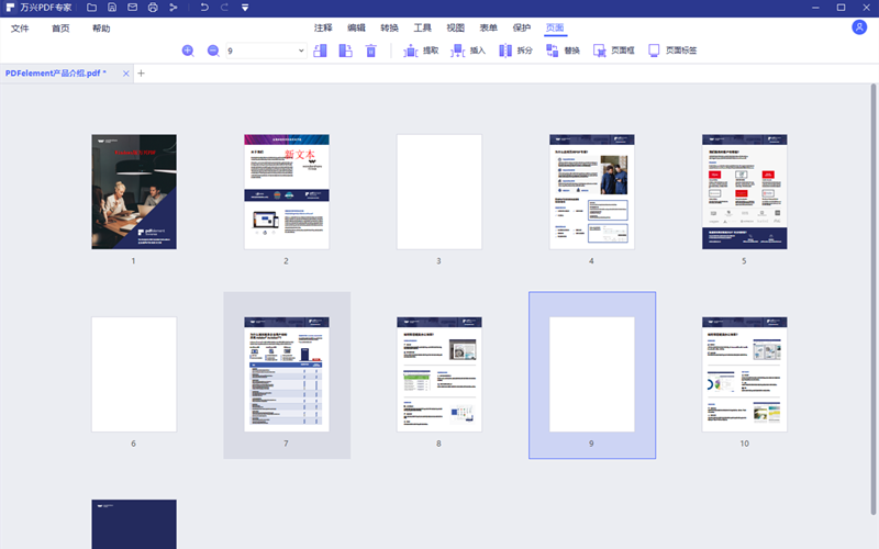 步骤2、被打开的PDF文件默认情况下会在编辑栏的浏览模式中显示。点击日韩免费视频观看PDF软件上方的“页面”,进入到页面功能区界面。在这里用户可以看到PDF文件的内容页被以缩放图的方式集中展示,其中的空白页有多少在哪里都是一目了然。
