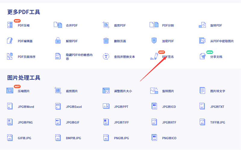 1.访问网址http://www.hiPDF.cn/打开在线版日韩免费视频观看PDF。在主页面的所有工具中的更多工具项内找到PDF签名,点击进入。