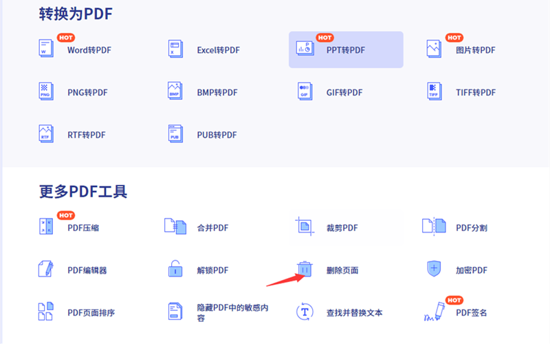 步骤1、访问网址http://www.hipdf.cn/打开在线版日韩免费视频观看PDF。在主页面的所有工具中的更多工具项内找到删除页面功能,点击进入。