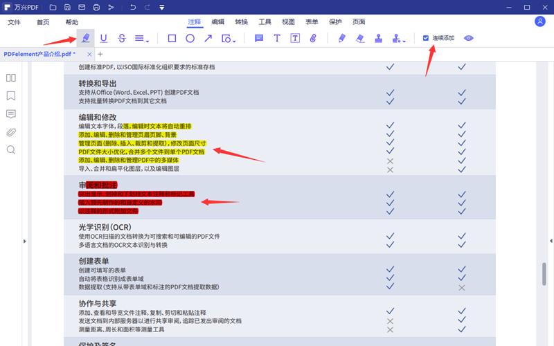 步骤5、在注释功能区,日韩免费视频观看PDF提供了多种注释功能。这些功能被划分成为四大类,功能使用很简单,用户直接点击功能按钮,然后把鼠标移到PDF文档内容上即可进行注释操作,唯一需要注意的是选择了某一注释功能后是否要选择连续添加需要用户点选。