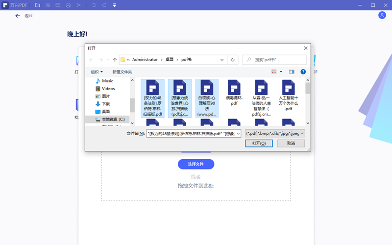 第二步,点击合并PDF功能图标,找到需要拼接的PDF文件,选定后点击打开。(软件支持一次多选)。