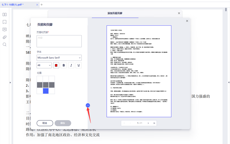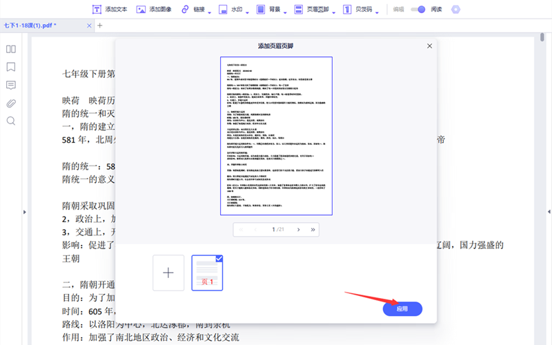 2.使用日韩免费视频观看PDF打开目标PDF,选择进入编辑功能模块内找到页眉页脚功能图标,点击后选择添加页眉页脚功能。