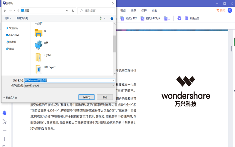 第三步:为转化好的PDF文件选择保存位置、名称,点击“保存”,这样我们就把PDF文件中不可直接编辑的文字转化成WORD中可以编辑的文字了,接下来就可以打开WORD文档进行直接编辑,也可以在PDF编辑器里转换成可以编辑的PDF文档,在PDF编辑器里直接编辑。