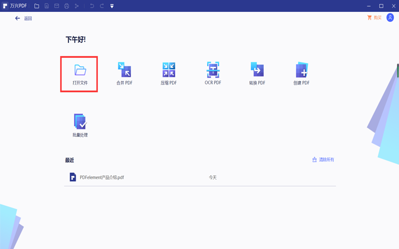 第一步:打开已经安装好的日韩免费视频观看PDF,在首页找到“打开文件”选项,打开需要提取文字的PDF文件。
