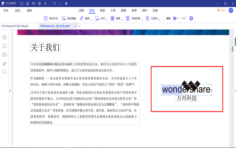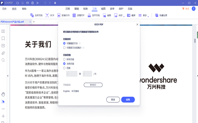 第四步:点击“应用”,我们就可以得到OCR识别处理过的PDF文件。这时我们可以看到之前图片上的文字,我们可以进行一些编辑方面的操作了。