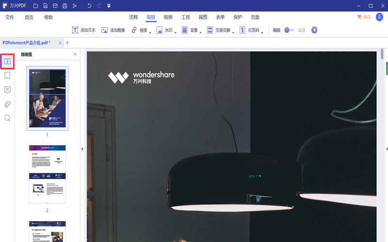 第二步:点击页面左侧工具栏内的“缩略图”功能,这时我们发现所有的PDF页面从上到下依次排列,这时我们可以选中需要调整的PDF页面进行拖动,从而调整PDF文件的页面顺序。