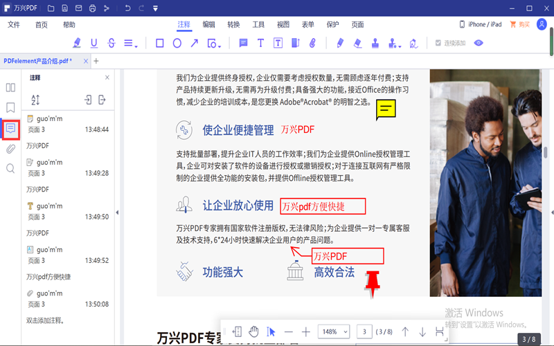 如果PDF文档很长,只是内容很多的话,我们还可以对文档中的注释进行管理。