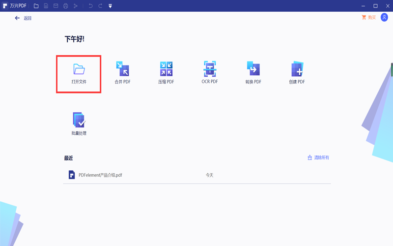 第一步:点击运行已经安装好的日韩免费视频观看PDF,点击首页的“打开文件”,打开需要进行内容遮盖的PDF文件。