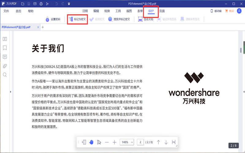第二步:找到菜单栏里的“保护”功能,并找到其下方的“标记为密文”选项。
