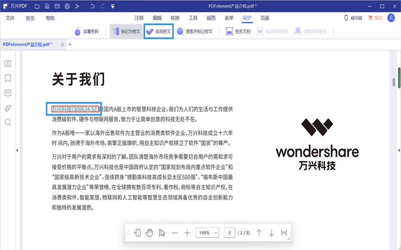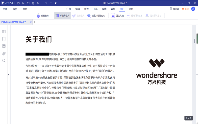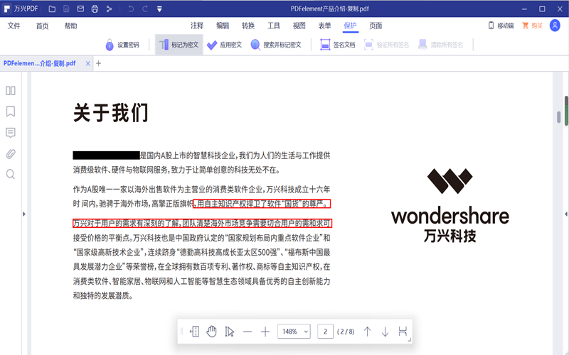 当我们再次将这个设置了密文的PDF文件打开的时候,会发现我们之前标记的部分被黑色方块遮挡住了,此时无论通过那种操作,都无法获知黑色方块下面是什么文字内容,这样就极大程度的保护了文件内容的安全。
