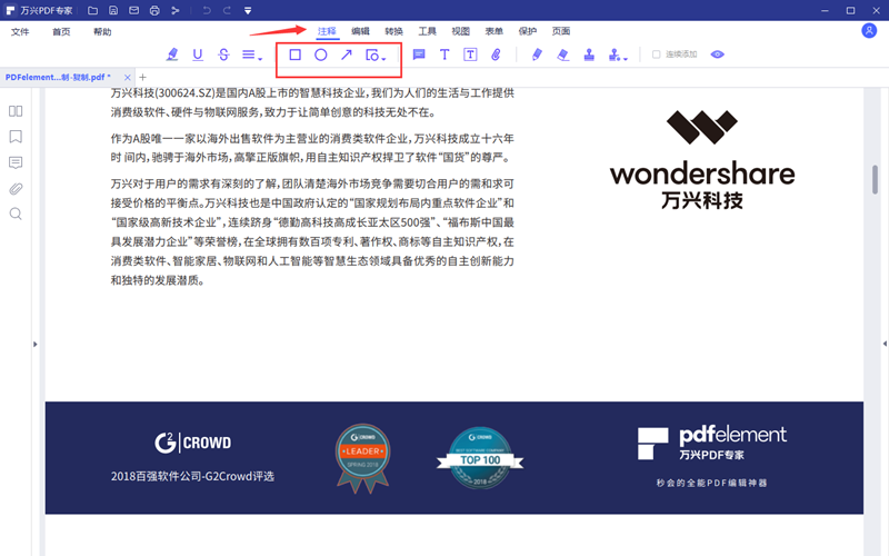 步骤3、点击软件上方的“注释”,进入软件注释功能栏界面,在第二行的注释功能选项内有各种图形添加功能按钮。这里软件提供了7种图形供用户使用,可以满足大多数用户的需求。