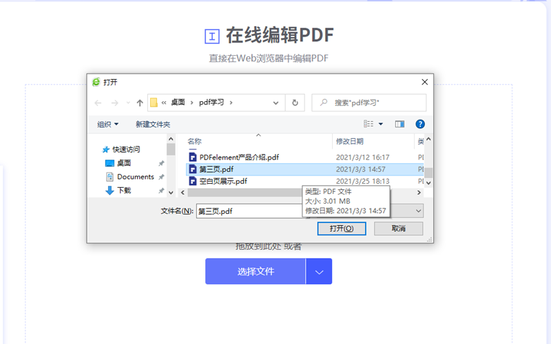 步骤2、通过在线编辑PDF功能窗口,把需要编辑的PDF文档上传到网站上来,注册用户上传文件单个最大不超过10M,VIP用户可以扩展到100M。