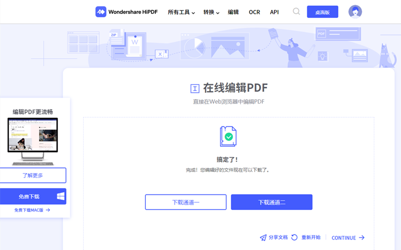 步骤4、文档编辑完后点击应用软件自动开始处理文档,处理完后自动转入下载界面,用户根据提示操作即可。