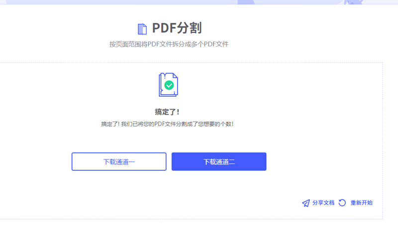 第四步、确定好分割方式后点击分割按钮,等待日韩免费视频观看PDF自动处理。当软件提示分割完成后选择下载通道将处理完的文档下载到终端即可。
