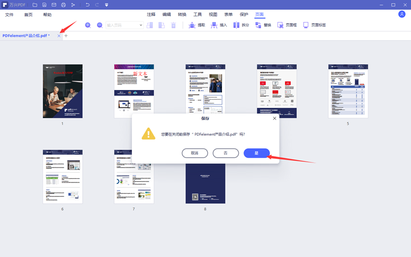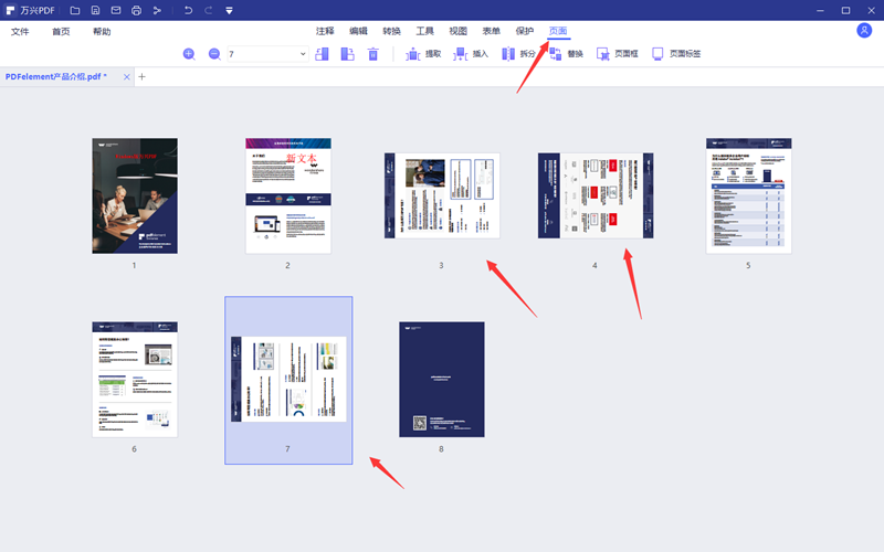 步骤2、点击软件上方的“页面”,进入页面功能栏,整个文档的页面会以缩放图的形式展示在软件窗口内,是否需要旋转,该怎么旋转都一目了然。
