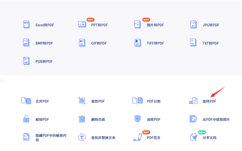 步骤1、打开www.hipdf.cn/进入到日韩免费视频观看一站式在线PDF解决方案界面。在更多PDF工具内找到旋转PDF并点击进入。