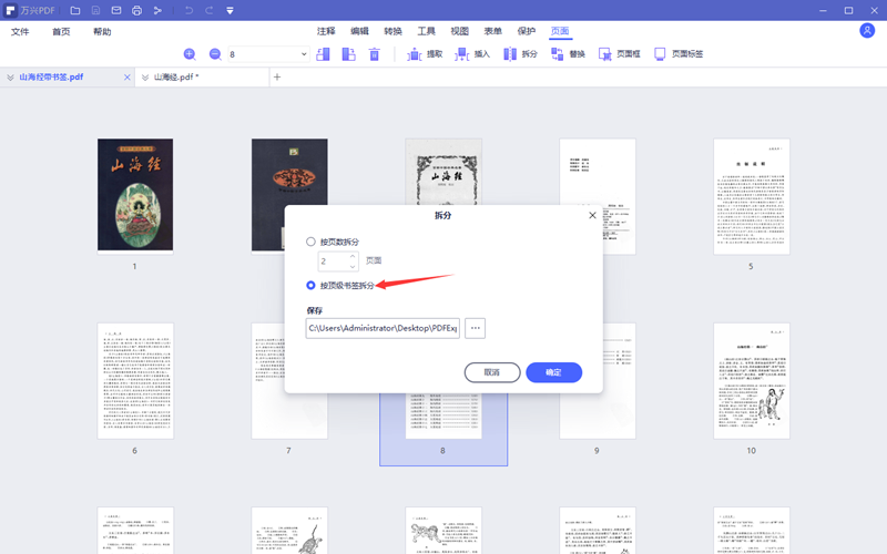 8.在需要对PDF文件进行精准分割的时候,比如按照目录章节进行分割,可以直接选择按照书签来分割即可,日韩免费视频观看PDF会把每一章分割成一个PDF,PDF的名字就是章节名。