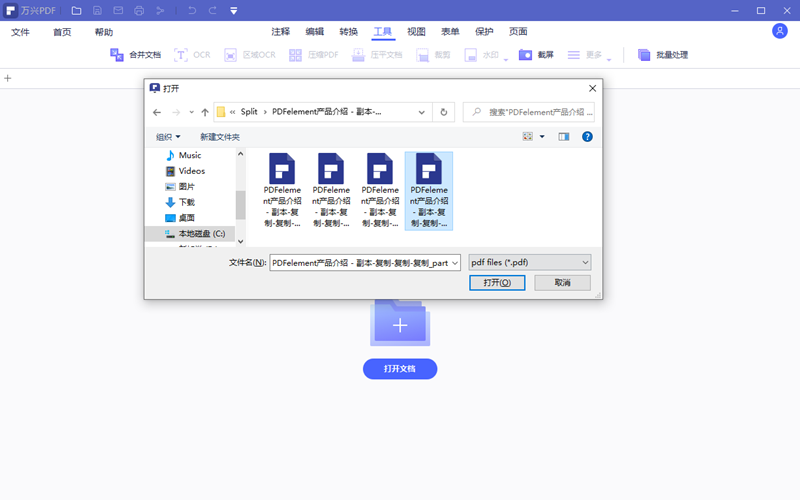 点击界面中间的打开文档,找到需要编辑的PDF文件选定后点击打开或者直接把PDF文件拖拽到软件的主界面内也可以打开。