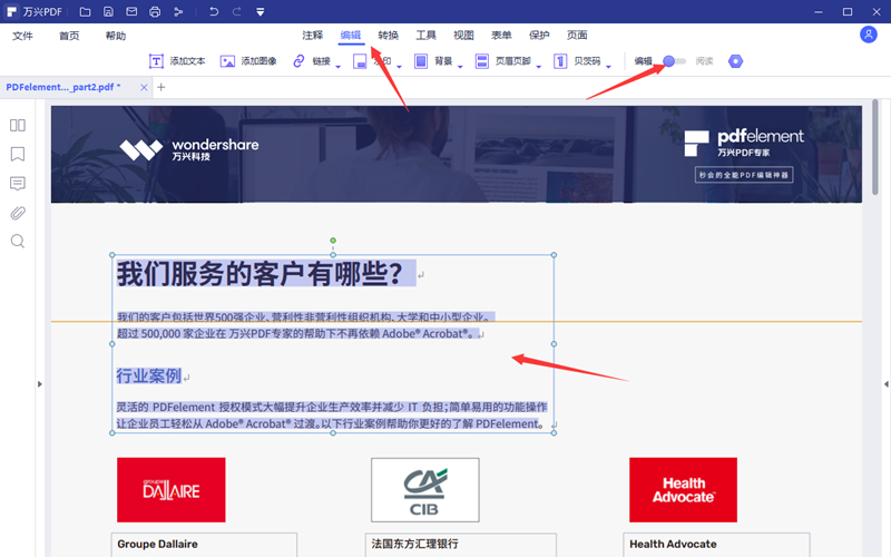 第四步:在软件的编辑功能模块内激活编辑按钮,整个文档就会从阅读模式改为编辑模式,常规情况下PDF文件内的文字或者图片都可以直接复制了。