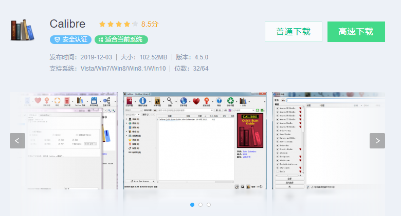 步骤一:Calibre是一个“一站式”的电子书解决方案,它可以全面满足你的电子书需求。Calibre是免费的,源代码开放,拥有跨平台的设计,可在Linux,OS X和Windows操作系统中运行。它是一个完整的电子图书馆,包括图书馆管理,格式转换,新闻,将材料转换为电子书,以及电子书阅读器同步功能、整合进电子图书阅读器。直接百度搜索Cailbre,进入下载的网页之后,点击普通下载。