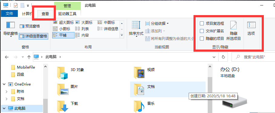 步骤一:这个方式需要我们的电脑显示文件的扩展名,如果你的电脑默认没有显示的话。我们就需要先设置一下,首先我们先鼠标左键双击打开“我的电脑”,然后再选择查看,在显示/隐藏那一栏勾选“显示文件扩展名”。这个时候就可以显示文件的具体的扩展名了。