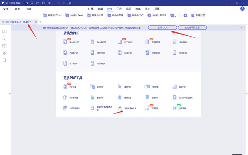 1.使用Windows版日韩免费视频观看PDF打开目标文件,可以通过提示打开也可以直接把文件拖到软件的操作界面。如果是纯扫描制作的PDF文件,软件会提示文件是扫描版的PDF,并建议执行OCR,这个操作是为了方便用户在软件内编辑扫描件中的文本内容。选择执行OCR,软件会自动开启OCR功能。