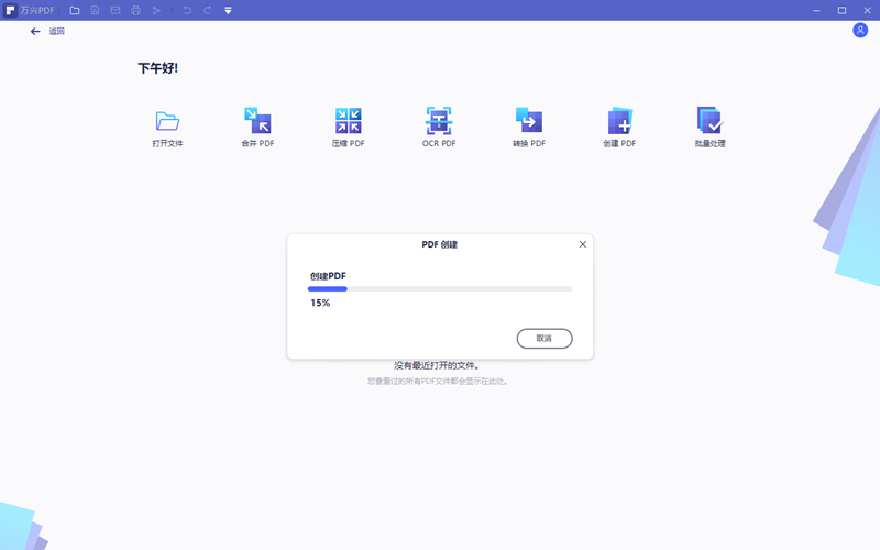 3.软件提示正在创建PDF的时候需要耐心等待,这个过程的长短通常是由PPT文档内容多少和电脑运算速度决定的。软件完成转换后会自动打开创建完成的PDF文件,用户可以直接做后期的编辑处理,全部处理完毕了再一起保存即可。
