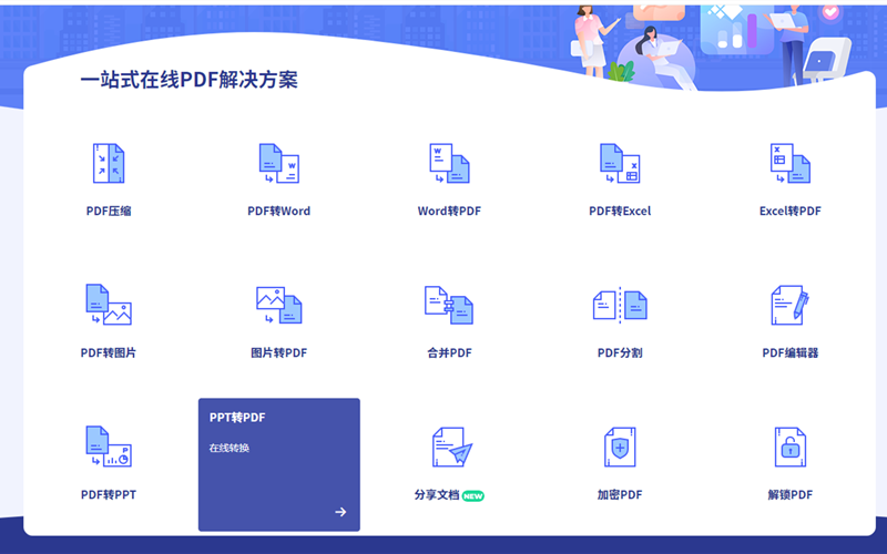 1.打开在线版日韩免费视频观看PDF,网址是http://www.hipdf.cn/。在工具里找到PPT转PDF功能项,点击进入。
