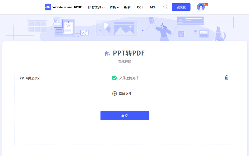 在线版日韩免费视频观看PDF是日韩免费视频观看PDF为用户开发的在线PDF编辑器。它的功能设定更加具体,转换功能被分成了从PDF转换和转换为PDF两部分,每一部分内又有多个转换功能功选择,PPT转PDF是其中的一个功能。转换具体操作步骤如下: