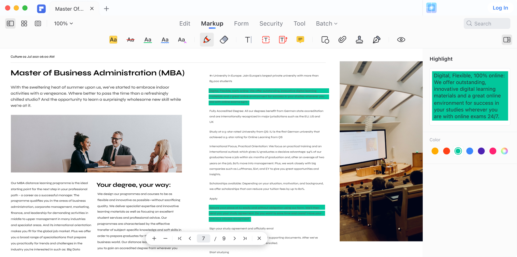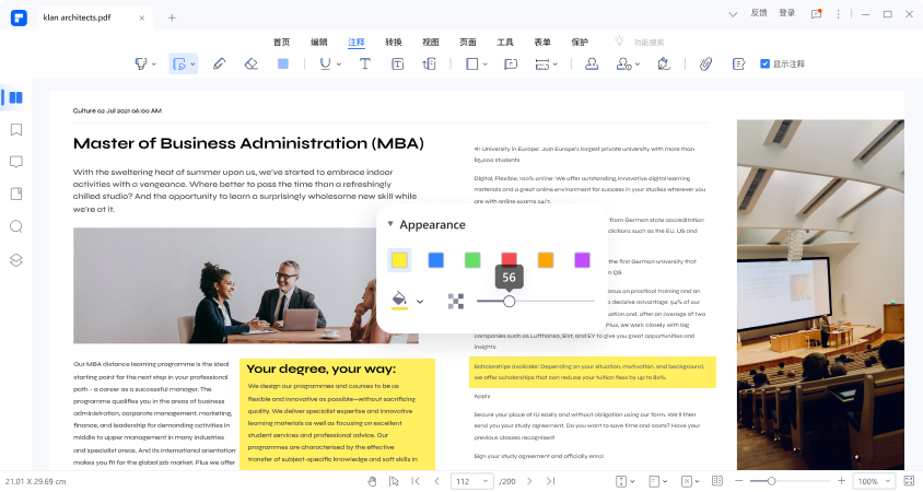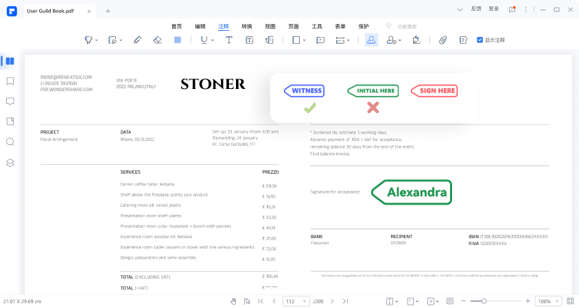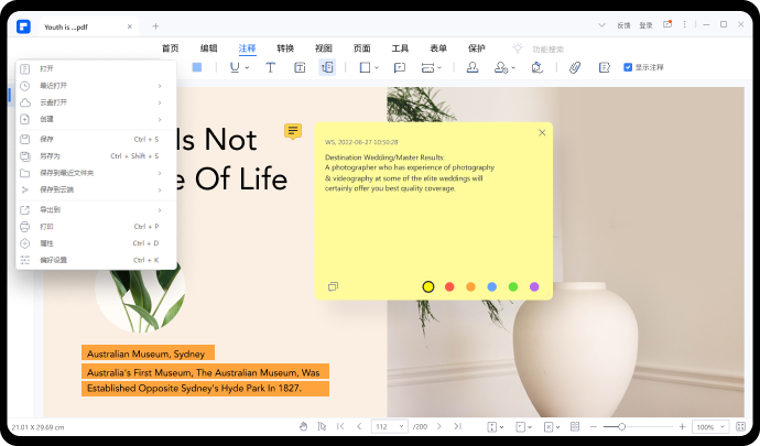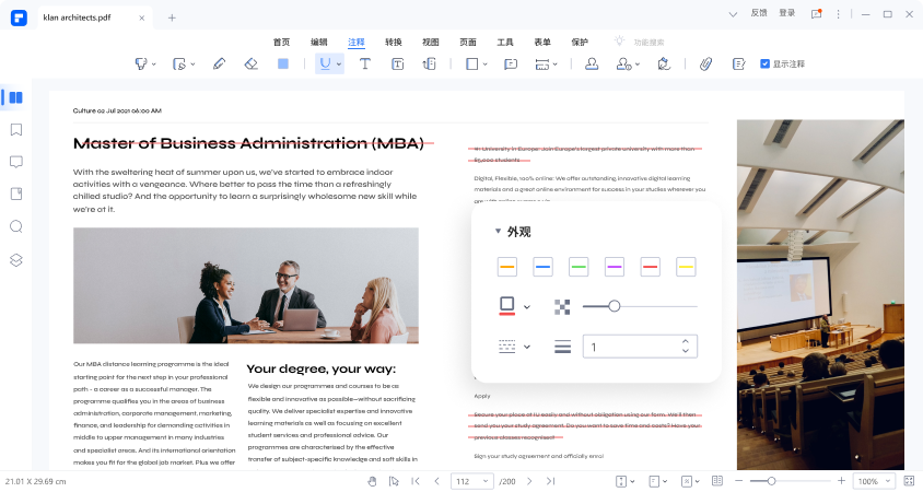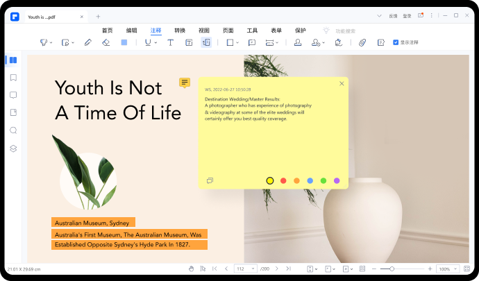 注释和标记PDF的方法有很多。首先,您可以通过粘贴便签、用画笔或高亮工具注释文本。此外,您可以为文本添加下划线、删除线和高亮重要区域。当然还有动态形状、签章和线条。