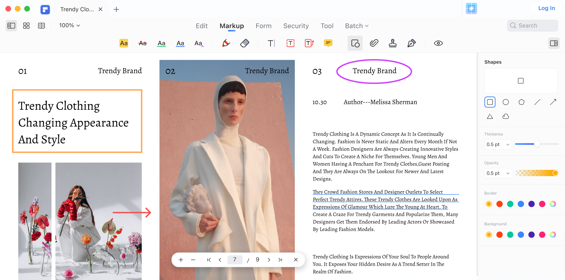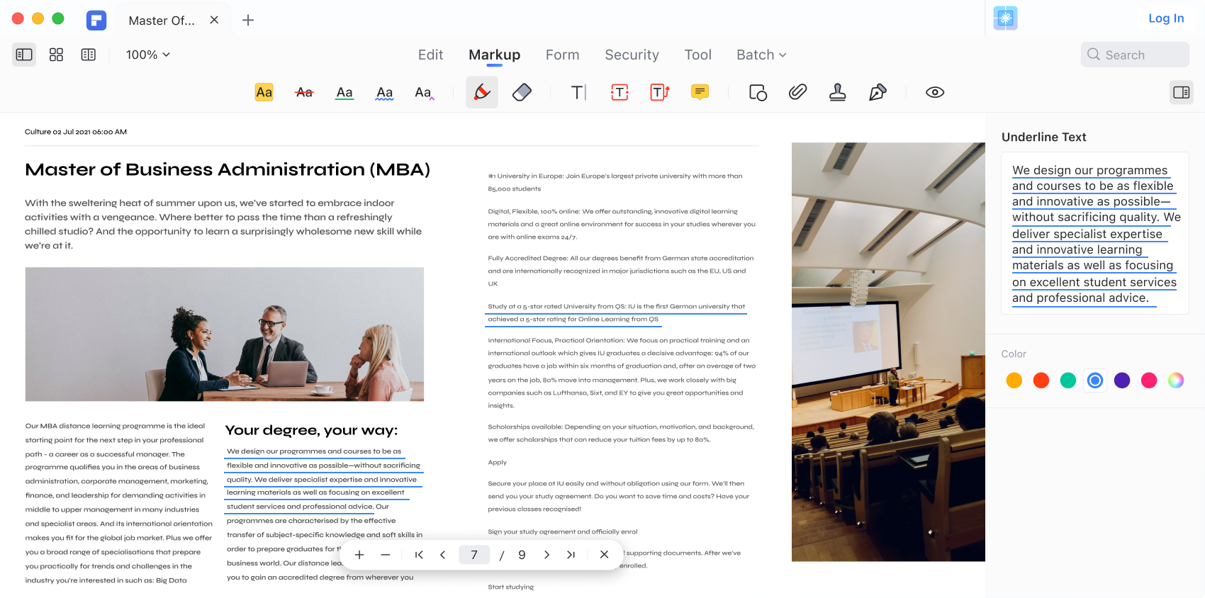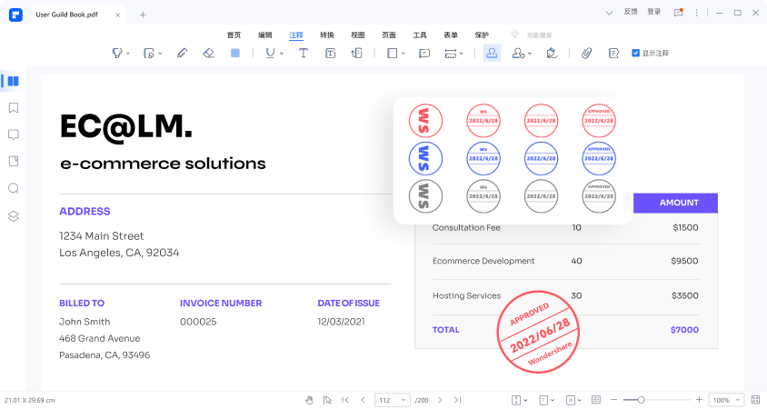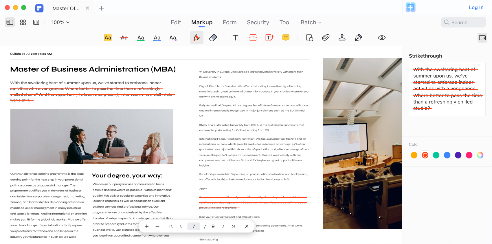 注释和标记PDF的方法有很多。首先,您可以通过粘贴便签、用画笔或高亮工具注释文本。此外,您可以为文本添加下划线、删除线和高亮重要区域。当然还有动态形状、签章和线条。