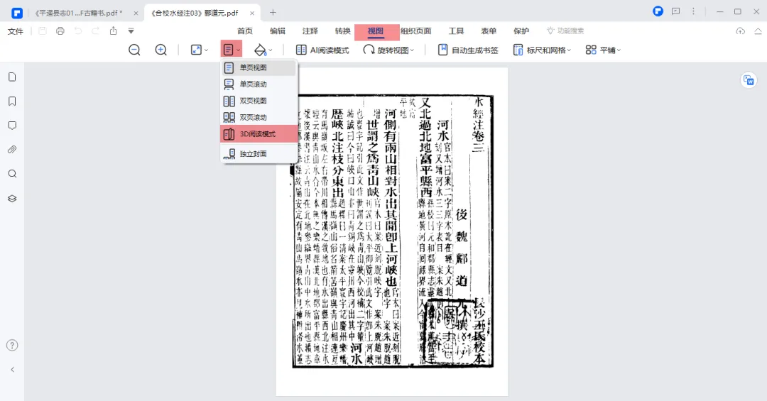 系统生成PDF版书籍后,点击【视图】,切换到阅读方式,选中【3D阅读模式】。