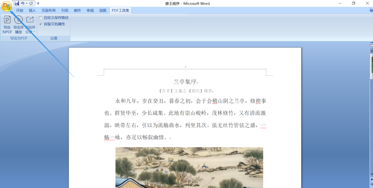方法二:通过offfice按钮,实现Word到PDF的转换