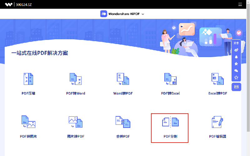 第一步、使用终端访问网址http://www.hipdf.cn/,在主页面找到PDF分割项点击进入。