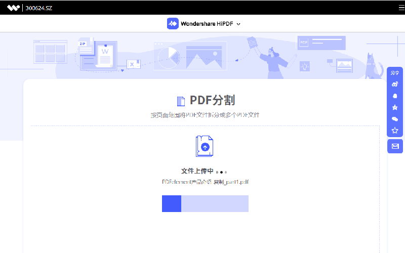第二步、根据提示在终端上找到需要分割的PDF文档,双击文档上传PDF文档到网站(文档必须是10M以下),等待文档上传完毕。