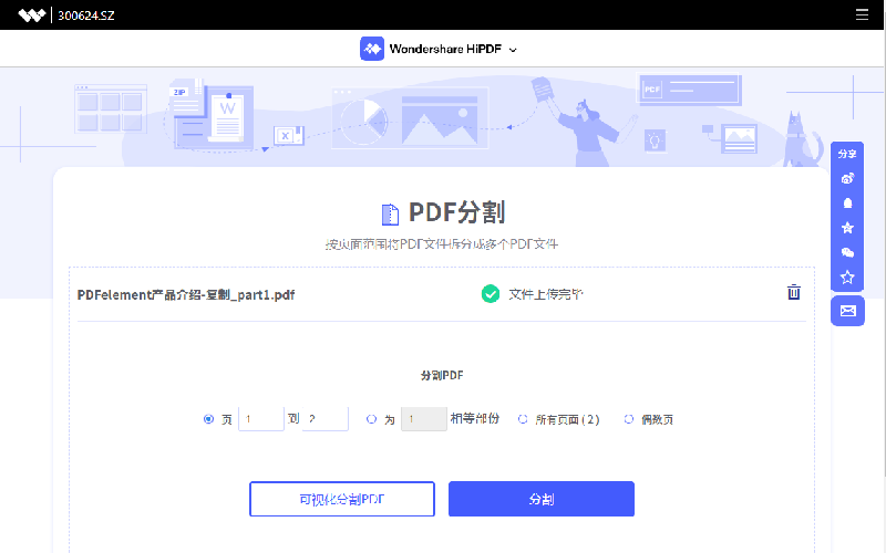 第三步、上传完毕后进入分割界面,日韩免费视频观看PDF网页版提供了多种分割方案供用户选择,常规选项有等份分割和按偶数页分割,用户还可以通过可视化分割来实现自己的个性需求。