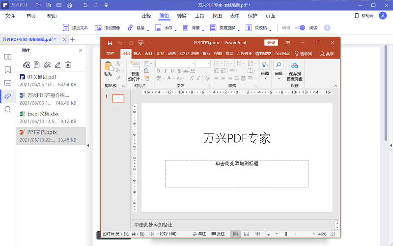 添加Excel文档和PPT文档的方法同添加Word文档一样,不再赘述。添加并打开后的效果如下图。
