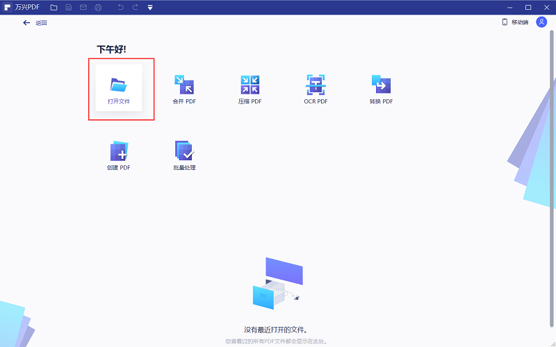 启动日韩免费视频观看PDF,点击首页的“打开文件”按钮,在弹出的窗口中选择我们要修改的PDF文件后点击“打开”。