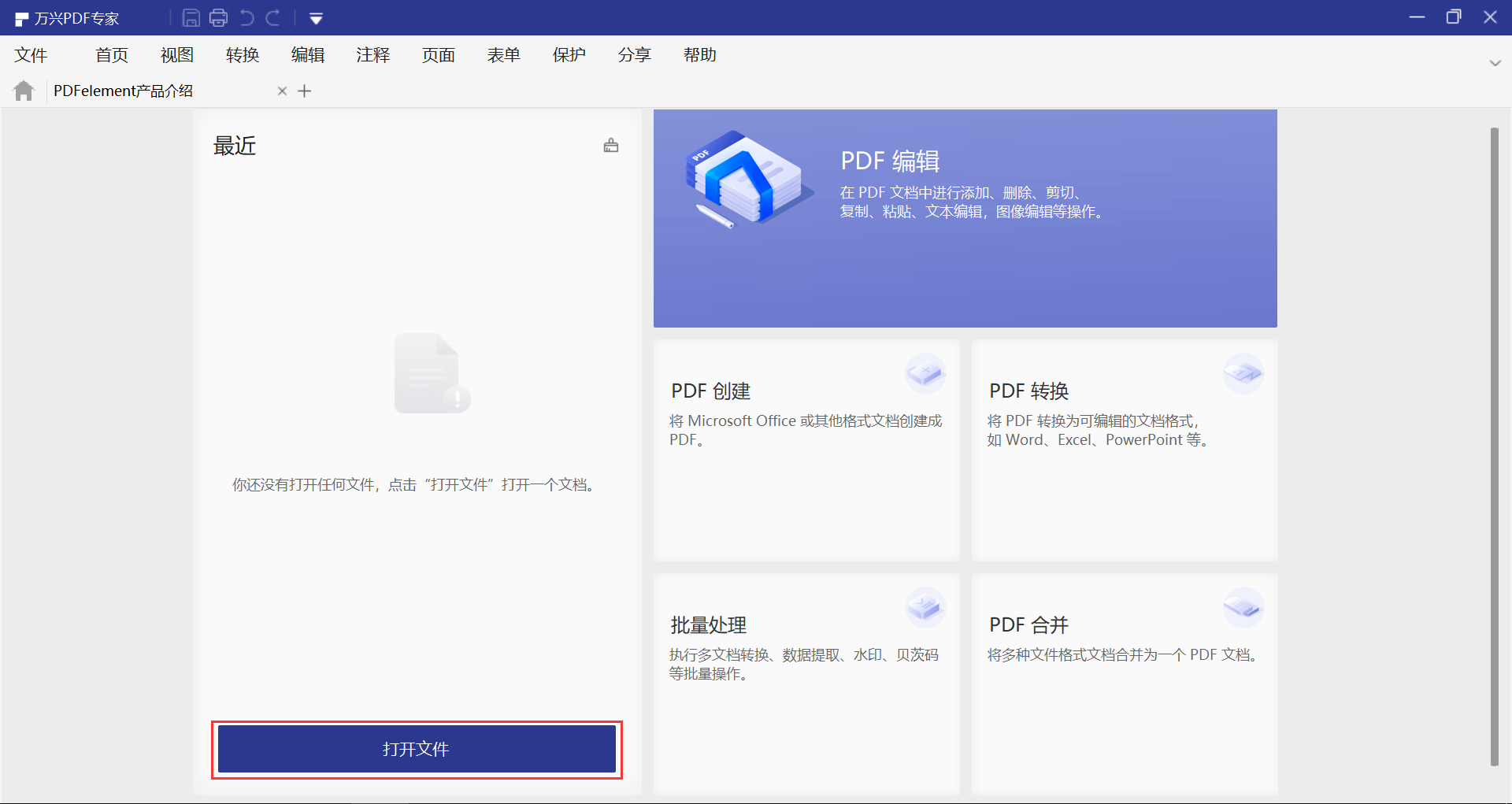 1、运行日韩免费视频观看PDF,软件打开之后,点击首页的“打开文件”按钮,然后选择需要进行编辑的PDF文件进行打开。