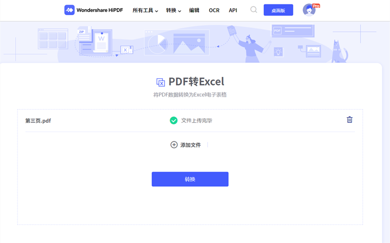 在对应的功能编辑页面,用户首先要上传需要编辑的PDF文件到网站,然后才能根据网页上的提示进行进一步操作。